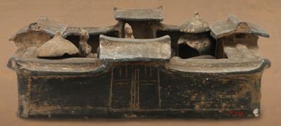 宋代陶院尺寸:纵41.5厘米,横41.5l厘米,高9l厘米/形态特征:陶院平面布局呈正方形,四边院墙围绕,均设门洞,院内有二陶房和二舂杵分别依墙角而立。院中有猪、狗、鸭等家禽、家畜。另有三人着长袍拱手而立于院中。